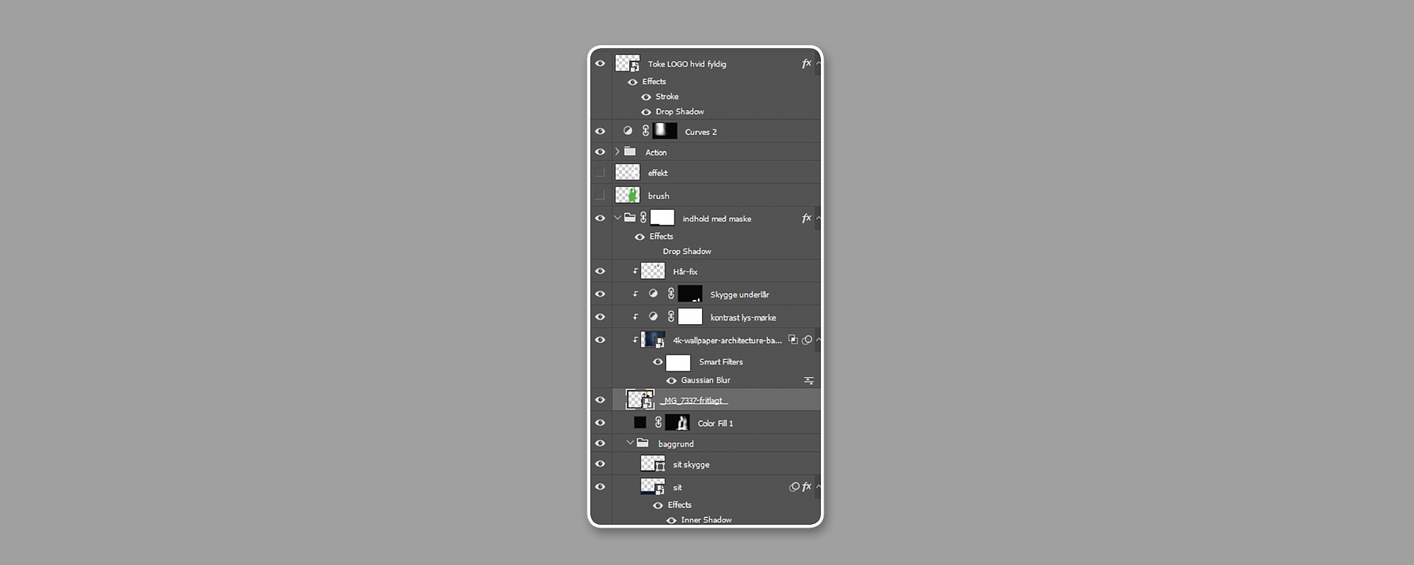 For at arbejde rationelt anvender jeg non-destructive metoder som smart objects med filtre, masker og adjustment layers.
