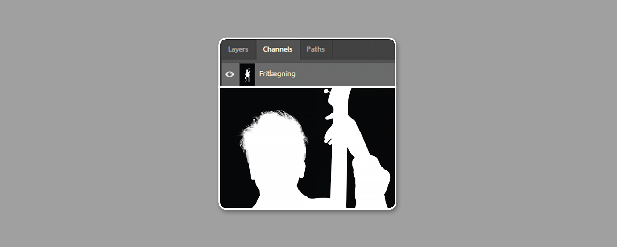 Pen tool har her været den bedste metode for fritlægning. Jeg har anvendt refine edge til håret, og gemt min selection som en channel til senere brug. For at fikse halo har jeg brugt stamp- og brush tool.